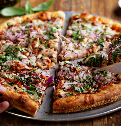 Chicken pizza is a healthier option to the traditional meat pizza & pairing it with whole wheat pizza dough enhances its nutritional value even better. Tender pieces of grilled chicken, smoky barbecue sauce, melted cheese, and crisp red onions come together atop a wholesome crust, creating a mouthwatering medley of flavors.